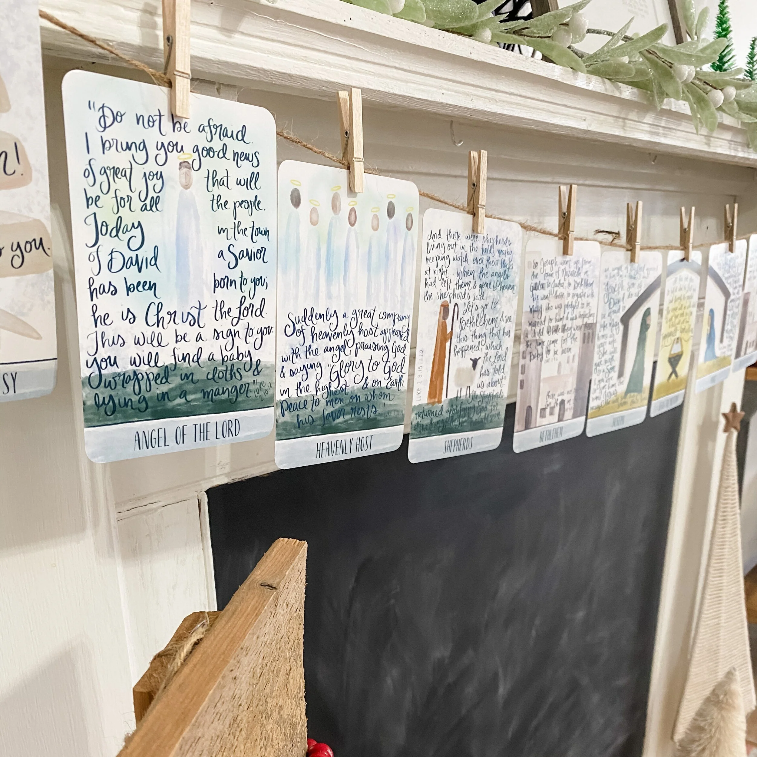 Add this beloved heirloom-quality Nativity Garland to your holiday collection! Countdown to Christmas Day with this beautiful artist-created set featuring heartfelt hand-lettered scripture and gorgeous original artwork in distinctive Casey Hilty style. This new tradition will quickly become a family favorite as the story of Jesus' birth unfolds throughout the holiday season this year and for years to come.